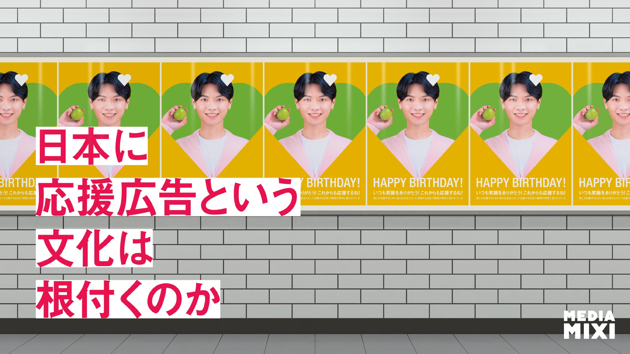 応援広告とは、推しの誕生日や入所日など、なにかをお祝いするために、ファンが主体となって企画・出稿する広告のこと。