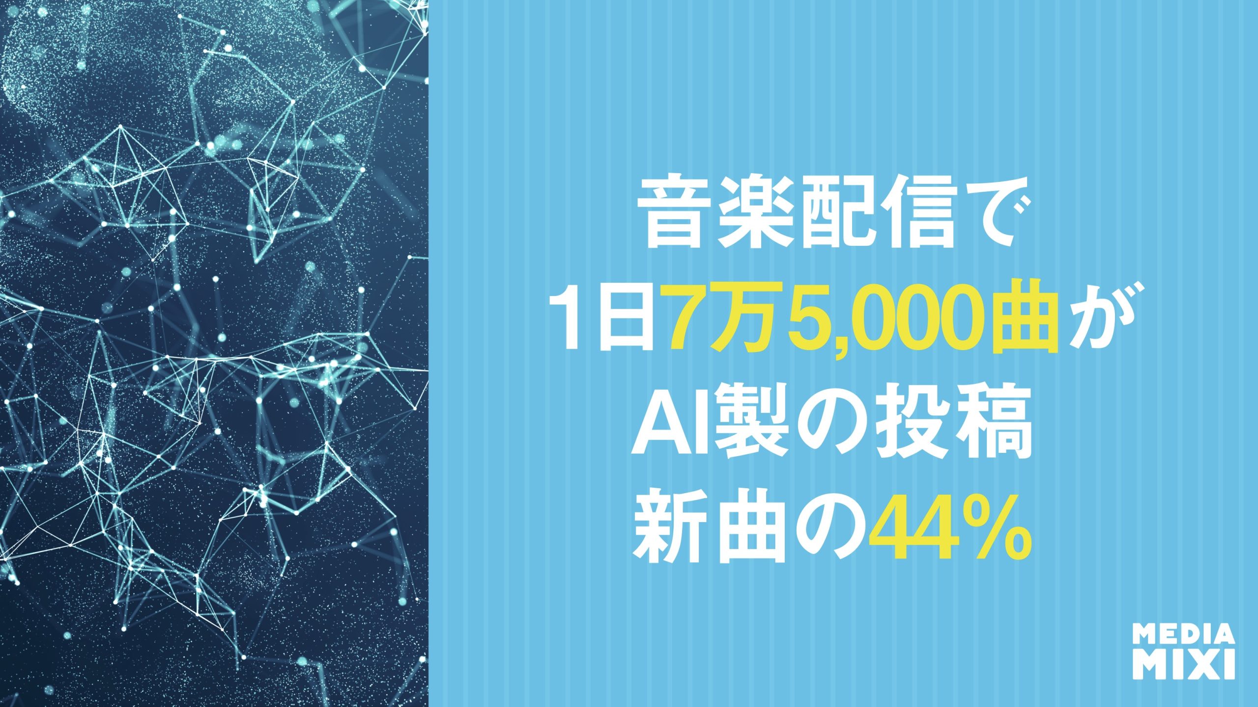 フランスの音楽ストリーミングサービスDeezerは4月20日、同プラットフォームで1日にアップロードされるコンテンツの中でAI音楽が占める割合が、全体の約44%に当たる7万5,000曲近くだと発表した。今年1月時点の6万曲(全体の約39%)から拡大。昨年11月は5万曲、9月は3万曲、1月は1万曲だった。